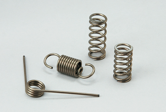 軽量、高耐食のチタン合金ばねや、タングステンを使用したコイルの加工です。
